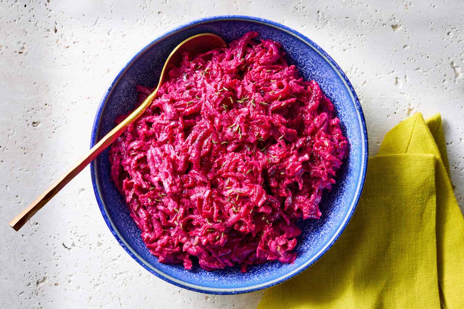 For me, buraczki symbolizes the start of the season. Beets are among the last fresh vegetables pulled from the garden during harvest, and they symbolize preparation for the winter ahead. We eat buraczki year-round, but it’s a reset for the season, reminding me that each season has its own moment to showcase beets—the Christmas season features warm beet soup, the spring sees grated beets turned into horseradish for Easter, summer means cold creamy beet soup known as chĹ‚odnik, and autumn highlights this salad.Â